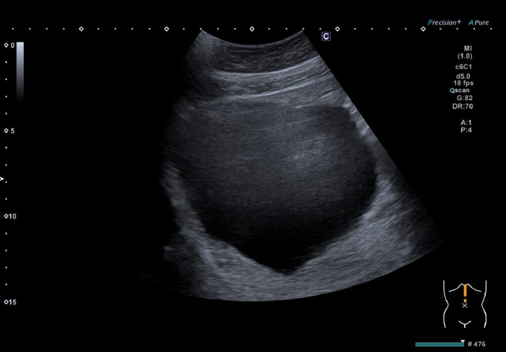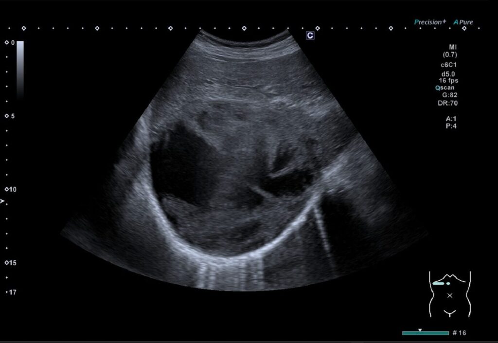 - 出血や感染の可能性:内部点状高エコー、モヤモヤエコー(フィブリン析出)や膿が見られることがある。
