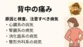 - 巨大嚢胞(10cm以上):周囲臓器の圧排による痛みや膨満感を引き起こすことがある。